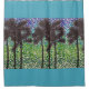 Palmeras, en silueta, contra un cielo verde y azul. El cielo se crea con puntos de color individuales en verdes, y blues, en diferentes tamaños. El fondo del azul acuático puede ser modificado según tu elección.