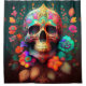 Esta cortina de ducha tiene un diseño artístico del cráneo.