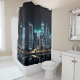 Un ilustracion fresco de un horizonte urbano por la noche con una reflexión sobre el agua.