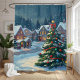 Bring the magic of Christmas into your bathroom with this Snowy Christmas Village Holiday Shower Curtain. This heartwarming winter design showcases a peaceful snow-covered village, twinkling lights, and a beautifully decorated Christmas tree under a starry night sky.