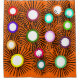 Esta cortina de ducha está recubierta de círculos blancos con diferentes líneas de colores y líneas negras que salen de entonces en un campo de naranja.