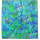 Esta bonita cortina de ducha presenta un diseño abstracto con numerosas capas de color azul, turquesa, verde y azul violeta en distintos grados de opacidad. Encontrarás colchonetas de baño y un dispensador de jabón y portaescobillas en mi tienda.