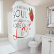 Berry de fresa roja con hojas verdes y un texto alma de fresa con nota dominante del amor. Una especie de camisetas, huellas y regalos para todos. El amor y el romance. Cortina de ducha para decorar el cuarto de baño para divertirse y estar de buen humor.