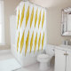 Esta obra de arte se basa en patrones hombus que crean una interacción clara de formas cálidas de tonos dorados y solares sobre un lienzo blanco limpio y luminoso, lo que da lugar a una cortina de ducha geométrica fresca.