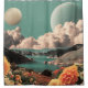 Cortina De Ducha Surreal Mountain Landscape with Planets and Clouds