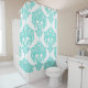 Cortina De Ducha Terciopelo Aqua Azul y Blanco Damask Glam Real