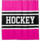 Este diseño deportivo y atlético incluye texto en negrita de HOCKEY dentro de una banda ancha de doble carrera en blanco y negro contra rayas exteriores de color rosa brillante. El texto de este diseño se puede personalizar.