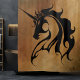 Perfil tribal negro de Unicornio sobre un fondo de piedra.