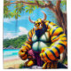 Esta cortina de ducha tiene una criatura troll artsa encima.
