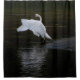 Fotografía de un cisne blanco que estira sus alas mientras camina por un río poco profundo. Derechos reservados ©2019 Kimberly J Tilley