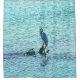Fotografía minimalista de un garza encaramado en un árbol que no ha quedado totalmente sumergido bajo el agua. La superficie del agua se ve perturbada por el viento y las olas crean un fondo de textura azul. Derechos reservados ©2018 Kimberly J Tilley.