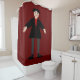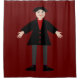 Esta impresionante cortina de ducha muestra una imagen de arte digital de un estúpido pero lindo Vampiro de Halloween. El vampiro tiene el pelo negro puntiagudo, una camisa roja y una chaqueta negra con los botones en forma de corazón rojo sanguíneo. Tiene una sonrisa espeluznante y largos colmillos blancos. También tiene uñas amarillas, calcetines morados y zapatos negros con hebillas de oro sobre ellas. Sus brazos están abiertos dándote la bienvenida a un abrazo malvado.