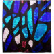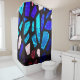 Esta cortina de ducha tiene un cuadro de vidrio manchado de bonito.