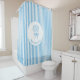 Cortina De Ducha Whimsical Blue White Stripe Preppy Monogram