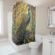 Un pavo real estilo William Morris en un bosque bien colocado en una bonita cortina de ducha.
