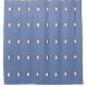 Una bonita cortina de ducha azul con pequeños lunares ovalados blancos, que tienen un borde marrón claro. Este diseño refrescante combina bien con una alfombra de baño azul, blanca o crema.