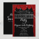 Cortinas rojas de HOLLYWOOD y Tarjetas de Invitación de Fiesta plateadas. Personalice ambos lados de la manera que desee, para cualquier evento.