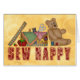 El wordart colorido en Paisley roja y blanca modeló el material, y un gráfico caprichoso de un oso lindo que se sentaba por una cesta abierta por completo de herramientas de costura. ¡El diseño perfecto para el yarnoholics y los adictos de costura!
