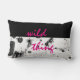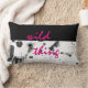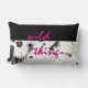 cosa salvaje arrojar almohada negrita arte arte abstracto en blanco y negro con texto rosado caliente. Original arte abstracto copyright Ann Powell todos los derechos reservados.