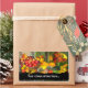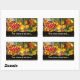 Un colorido pegatina del tiempo de cosecha con frutas y verduras, flores y hojas a través de una cerca de madera, añada el texto de su elección.