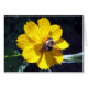 Una flor de cosmos amarillo limón atrae a un abejorro. Esta flor es de una mezcla de semillas llamada Luces Brillantes.