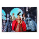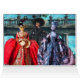 Expresivos, extravagantes y elegantes títeres venecianos de !700 , brillantes y espléndidos trajes azules rojos, coloridas, artísticas máscaras venecianas con plumas de pavo real y fantasía floral dorada púrpura, Collage Digital Original y Diseño Gráfico de Bulgan Lumini - Baldesign3d (c)