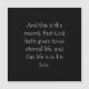 1 John 5 11. Consíganse de nuevo en la fe con este inspirador verso de la Biblia o cita de la escritura para encontrar fuerza curativa cristiana, estímulo y un poderoso levantamiento para superar los tiempos difíciles. Mostrar y usar una hermosa sabiduría religiosa de amor, esperanza, paz, alegría y felicidad para consolarse y plantar una semilla de creencia en tu espíritu o usarla como un regalo para los que amas. Amén.