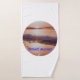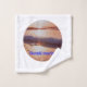 Une photographie époustouflante prise à l'heure dorée, capturant une vague écumeuse qui vient doucement lécher un petit coquillage sur une plage de sable, baignée par la lumière chaude du coucher de soleil. Les reflets dorés et cuivrés sur le sable humide créent une atmosphère magique et poétique, accompagnée de la légende en français « Beauté Marine ».
