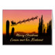 A Christmas card for your cousin and her husband showing Santa flying over the desert. Lots of tall cactus are seen in silhouette. Wish a merry Christmas from the desert with a lovely sunset colored card.