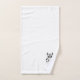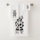 Bath towel set, consisting of a face cloth, hand towel and bath towel with an cow design. You can customise this bath towel set with any text of your choice. Should you require any help with customising then contact us through the message link on this page. Cow design bathroom towel set