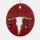 Cow Skull con adornos navideños en el Red Barn