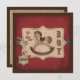 Diseño rústico occidental con mecedora de caballo, cuerda, insignia del sheriff y elementos de costura de montura para una tarjeta de regalo para la ducha de bebé.