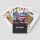 Personalizar estas cartas de juego y haz un regalo personal! Vaquero americano, imagen campestre occidental de un vaquero rotando y rodeando una manada de caballos salvajes con una bandera parótica en el fondo. Una gran tarjeta rodeo de estilo occidental.