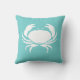 parte del decoc CRAB WHITE con temática oceánica sobre almohada azul verde azulada