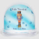Un petardo alemán tradicional que representa a un militar con uniforme azul y naranja. El petardo es superpuesto en una imagen de fondo azul con copos de nieve. También aparece texto en español que dice "Feliz Navidad". Personalizar agregando su propio texto adicional.