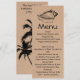 Elegante menú de recepción de bodas con temática playera, con gráficos de fondo artesanal marrón y un ilustracion de concha negra en la parte superior. Personaliza todo el texto para tu día especial. Hay productos que coinciden.
