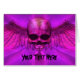Un cráneo con las alas en una explosión púrpura como fondo.