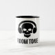 Esta taza ofrece un cráneo con los auriculares y la frase "tono del sitio". Es perfecta de mezcladores de sonidos de la producción y otras que trabajan en la producción de la película, de la televisión y del vídeo. ¡Ninguna necesidad de decir en voz alta tono del sitio encendido fijó cualquier más largo, apenas levanta su taza al cielo!
