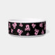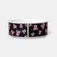 Este cuenco de cerámica de encargo del mascota tiene el cráneo femenino rosado punky y bandera pirata por todo él. Se repite alrededor del plato. Es rosado con un arco rosado en el cráneo. El centro tiene sitio para el su nombre de mascota en la plantilla. Haga clic el personalizar para cambiar el color o la fuente del fondo.