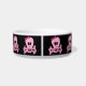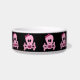 Este cuenco de cerámica de encargo del mascota tiene el cráneo femenino rosado punky y bandera pirata. Se repite alrededor del plato. Es rosado con un arco rosado en el cráneo. El centro tiene sitio para el su nombre de mascota en la plantilla. Haga clic el personalizar para cambiar el color o la fuente del fondo.