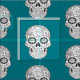 Cráneos blancos y negros del azúcar en fondo verde azulado