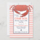 Sorprendente por su sencillez, esta invitación de coral y azul marino presenta un fondo coralino con rayas blancas y un gran gráfico de un cangrejo sobre un espacio blanco perfecto para muchas líneas de personalización con la información de tu evento. Simplemente utilice las plantillas que se proporcionan fácilmente para crear su propia invitación para la barbacoa de verano, el hervidor de cangrejo o la recepción de la playa náutica. La parte trasera está impresa en azul marino.