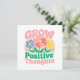 Cultiva una mentalidad más brillante con esta tarjeta de felicitación "Crea Pensamientos Positivos" que presenta flores caprichosas y coloridas y letras motivadoras. Esta obra de arte alegre fomenta la atención plena, el amor propio y el crecimiento personal, lo que la convierte en un regalo perfecto o un recordatorio personal para mantenerse positivo y difundir buenas vibras. Este diseño inspirado en las flores aporta belleza y ánimo a la vida cotidiana.