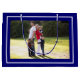 Navidades fotos de vacaciones y bordes azules y blancos con deseos de gran bolsa de regalo. Fotografía © Storytree Studios, Stanford, CA