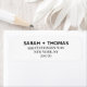Estas sencillas etiquetas de dirección de devolución con tipografía minimalista son perfectas para una boda sencilla. Crea tu propia etiqueta de nombre y dirección de invitado