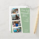 Captura y comparte tus recuerdos favoritos de la vida en una van con esta postal de vacaciones personalizable. Con un diseño elegante de tira de fotos blancas sobre un fondo azul profundo, esta plantilla de postal te permite agregar cuatro fotos personales de tus vacaciones. Personalízala aún más con texto personalizado para tu destino de vacaciones, fecha o un mensaje reflexivo. ¡Perfecta para enviar saludos desde tus viajes o guardar como recuerdo!
