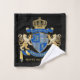 Crea tu propio escudo aristocrático de armas, emblem, insignia o escudo familiar con este bello y clásico escudo o escudo. Los motivos azules cobálticos decoran un escudo coronado con corona dorada y flanqueado por un león o un ataúd heráldico medieval. Una pancarta superior a juego contiene tu fecha de boda/fecha de nacimiento/lema o grito de batalla. El escudo tiene espacio para sus iniciales de monograma. El cartel inferior lleva el nombre de su familia. También hay espacio debajo para tu cita, lema o mensaje favorito. Reemplace el texto de ejemplo por el suyo propio para obtener un regalo personalizado. Diseño neutro en género que trabajará para familias, grupos, parejas o individuos. Hace un regalo maravilloso para Boda, Aniversario, Cumpleaños, Jubilación, Promoción, Día del Padre, Fiesta de Licenciatura, Ducha de Bodas, Graduación, Día Internacional de la Heralgia, fiestas medievales o con temática de Fantasía y otras ocasiones especiales.