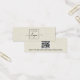 Mini tarjeta de presentación de producto de lectura con código QR y personalizado de la plantilla de logotipo en una IMAGEN IMPRESA de lino color crema. Se pueden ajustar las guías de asignación agregando y eliminando espacios en el campo de plantilla y moviendo todo el elemento en la herramienta de diseño.
