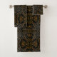 Bath Towel Set Of Three Sizes decorative bathroom amenity and home furnishing decor accessory printed with a Creamy Golden Yellows Raked Pattern On Black six sided symmetrical repeat patterned geometrical original graphic art design illustration by TheFabricSeal at Zazzle #ZazzleMade https://www.zazzle.com/store/thefabricseal