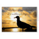 Una gaviota mirando la puesta de sol con una palabra motivadora especial sobre el pájaro.